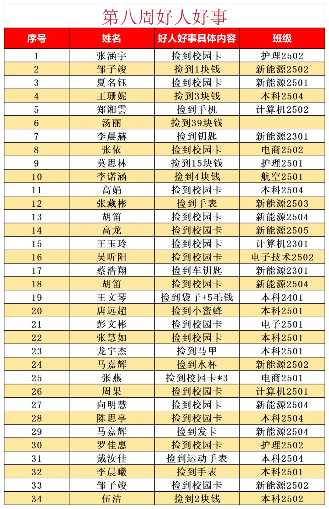 在校园的青葱岁月里,点滴善举如繁星闪烁,照亮我们前行的道路。这里,是美德的花园,每一朵花都绽放着温暖与力量。从清晨的轻声问候,到课堂上的热心互助;从校园角落的垃圾清理,到对困境同学的真诚关怀,一件件好人好事,编织成校园最美的风景。好人好事,传递善意,弘扬善举,营造善风,希望全体师生以此为榜样,积极践行社会主义核心价值观.....